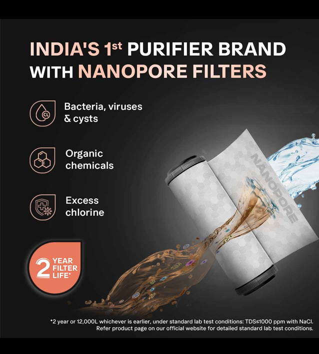 In the Box Water Purifier 1N, Accessory 1N, Input pipe 1N, Diverter valve1N & Warranty Card 1N + QR Code 1N, TDS Meter 1N