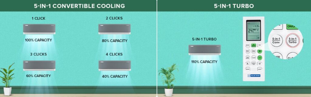 Bluestar 1 Ton 3 Star 5-in-1 Convertible Inverter Split AC (IE312DNU-S, SILVER)