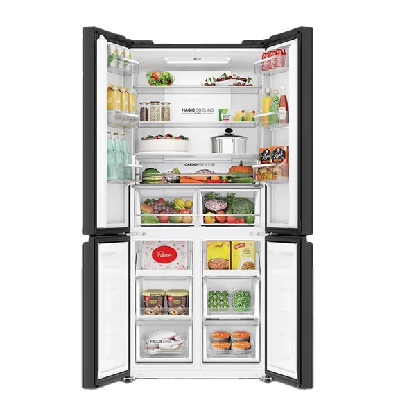 Haier 520L 3 Star Lumiere 4 Door Convertible Side by Side Refrigerator Wi-Fi (HRB-600KGU1, Black Glass)