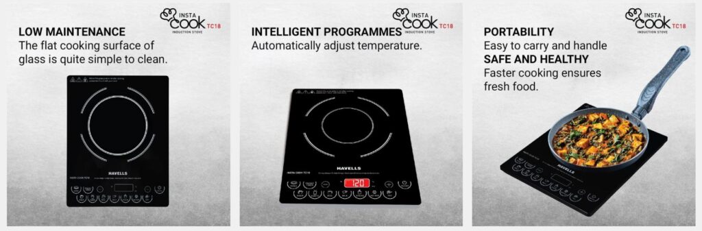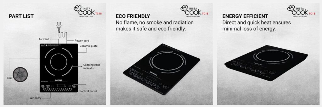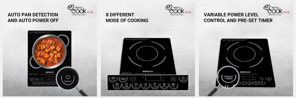 Havells 1800 W Insta Cook TC18 Induction Cooktop, 8 Preset Cooking Options With Copper Coil