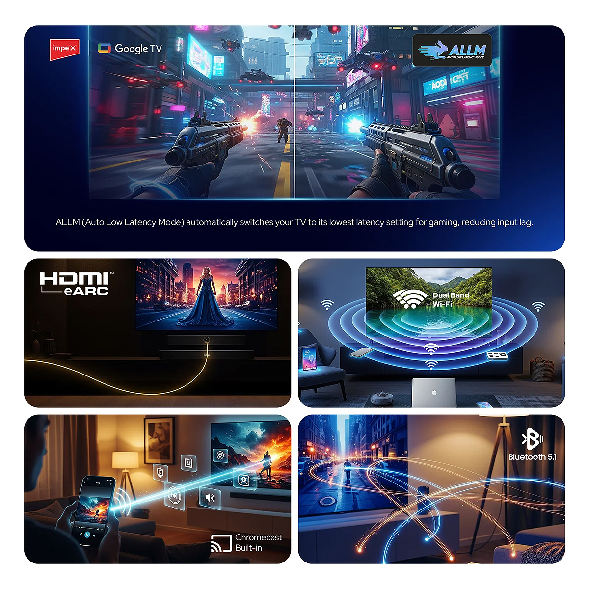 Next-Gen Smart OS: Powered by Google TV (Android 14), it offers a user-friendly interface with a built-in Chromecast and Google Assistant.