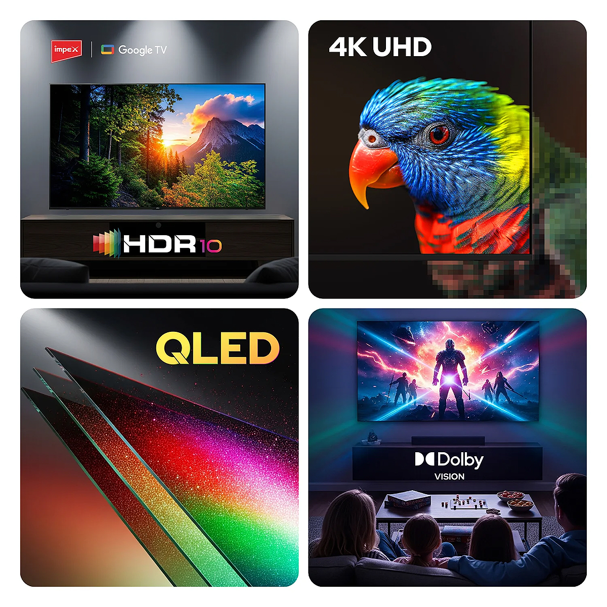 IMPEX 43 Inch QLED UHD 4K Smart Google LED TV, Android 14 (43S4QLF3, 4 Year Warranty)
